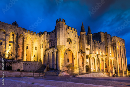 Le Palais des Papes à Avignon la nuit, dans le Vaucluse en Provence, France
