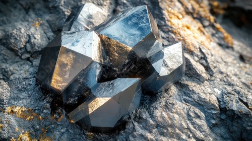Lead and zinc mineral ore crystals displayed on a rocky surface, showcasing distinct angular shapes and metallic luster, geology, mining, natural resources, close-up view.