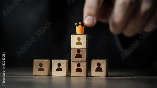 Leadership Concept with Golden Crown on Wooden Block Figure