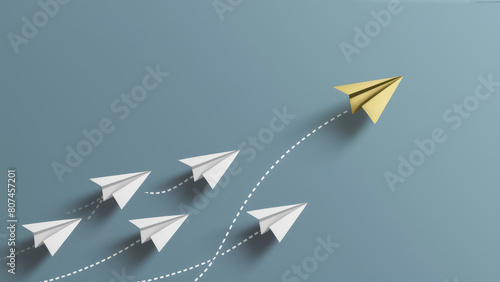 Leadership Concept with One Gold Paper Plane Leading Others with Copy-Space