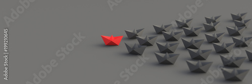 Leadership, success, and teamwork concept, red leader boat leading black boats. 3D Rendering.