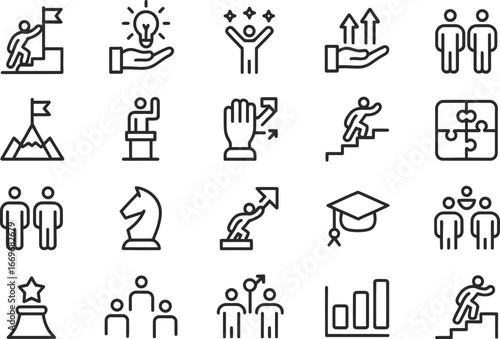 Leadership success strategy development and teamwork icons for business and personal growth plan