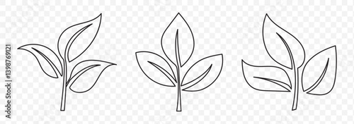 leaf, branch icon set, Eco friendly ecology icons. Environmental Leaves, natural, eco, vegan, bio labels vector symbol logo illustration line editable stroke design style isolated on transparent png.