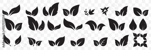leaf icon. Black leaf icons set. Leaves icon on transparent background. Collection green leaf. Elements design for natural, eco, vegan, bio labels on Transparent Background. EPS 10.