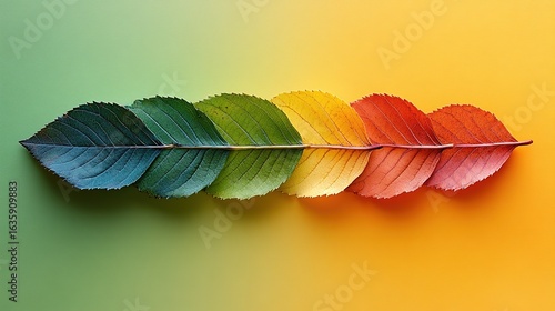 Leaf Life Cycle on Solid Color Background Close-Up, Natural Color Change Design Material