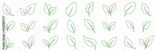 leaf line icon set. Leaf line icons. Vector illustration include icon botany, herbal, ecology, bio, organic, vegetarian, eco, fresh, nature outline pictogram for flora. EPS 10.