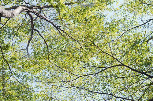 leaf on sky. forest background . green nature background.big tree. leaves background