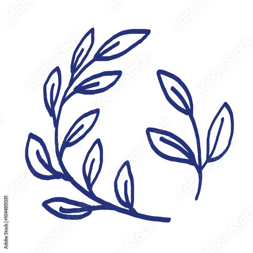 Leaf sketch. Hand drawn vector leaves illustration. Blue pen or marker drawing. Primitive kids picture