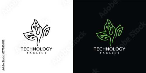 leaf technology inspirational logo design. digital creative leaf idea icon.