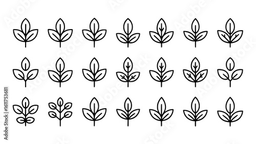 Leaf Variations: A minimalist line art illustration showcasing a collection of diverse leaf designs, each with unique structural details and growth stages.