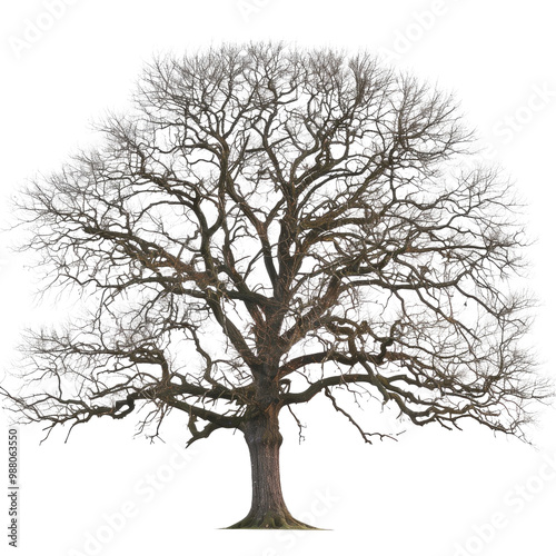 Leafless Oak Tree Isolated on White Background for Easy Editing