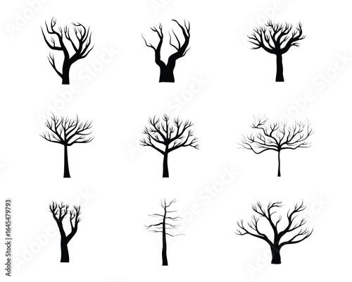 leafless trees pack set collection pack bundle black shape icon silhouette vector flat illustration design on white background