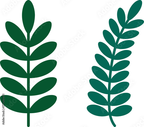 Leafy Branches Vector – Stylized Botanical Pair with Symmetrical Green Leaves and Stem
