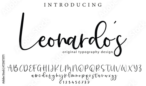Leanardo's. Handdrawn calligraphic vector font for hand drawn messages. Modern gentle calligraphy
