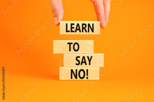 Learn to say no symbol. Concept words phrase Learn to say no on beautiful wooden blocks. Beautiful orange paper background. Businessman's hand Business psychological Learn to say no concept Copy space
