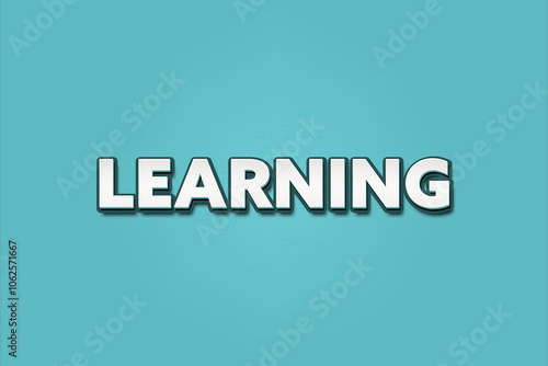 Learning. A Illustration with white text isolated on light green background.