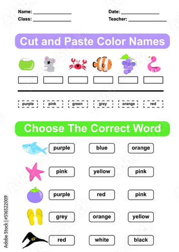 Learning about color worksheet. Preschool Education. Vector illustration.