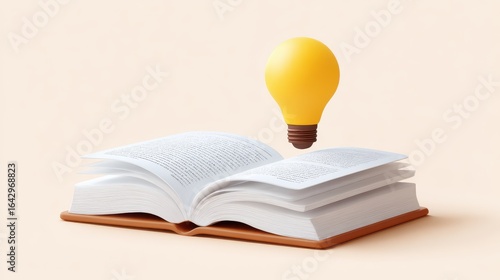 Learning and developing new future skills. Having creativity and imagination. Enjoying learning and gaining inspiration. Book and light bulb.