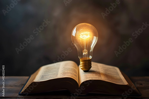 Learning and knowledge increases your chances of employment and advancement in life, using imagination Ideas and thinking, light bulb on book