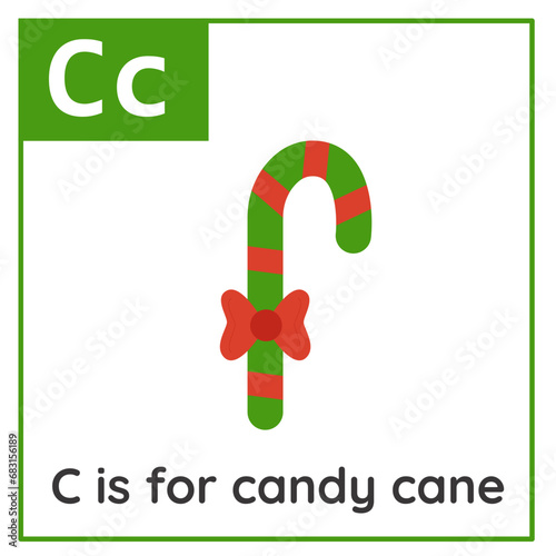 Learning English alphabet for kids. Letter C. Christmas cards. Worksheet for kids.