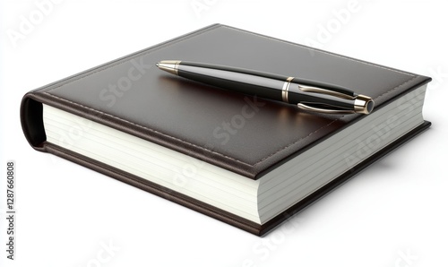 Leather Journal & Pen on White for Business, Writing, or Notes