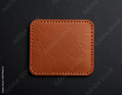 Leather patch on black. Stitched detail. Close-up view