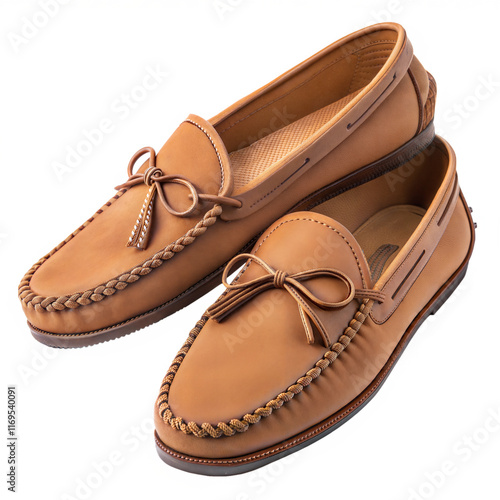 Leather women's moccasin shoes with intricate stitching design, positioned on a clean white background for a minimalist look, fashion, footwear, accessories, casual style.