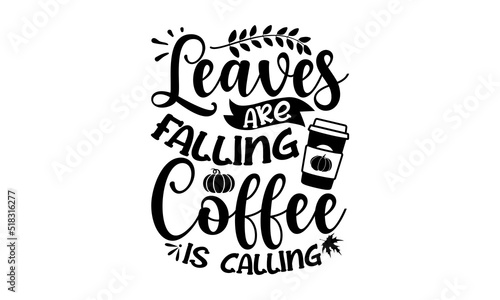 Leaves are falling coffee is calling- Thanksgiving t-shirt design, Hand drawn lettering phrase, Funny Quote EPS, Hand written vector sign, SVG Files for Cutting Cricut and Silhouette