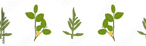 Leaves border on a white background. Hand-drawn illustration. Perfect for spring and summer.