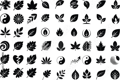 Leaves Silhouette Set | Botanical Nature Icon Collection Minimal Leaf Silhouettes | Foliage Vector Illustration