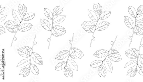 Leaves vector border. Hand drawn floral elements. Vintage botanical illustrations.Lineart border.
