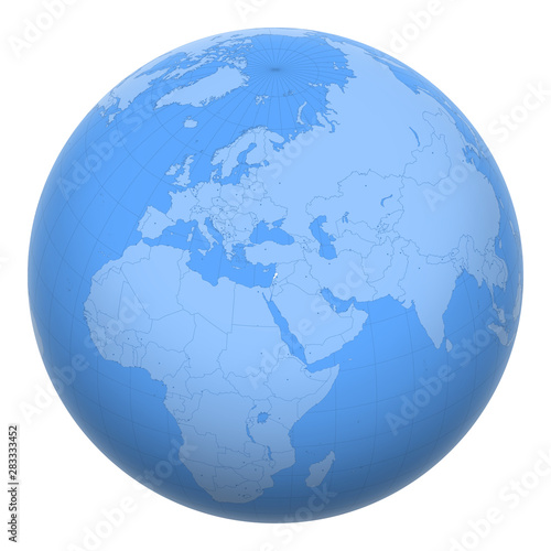 Lebanon on the globe. Earth centered at the location of the Lebanese Republic. Map of Lebanon. Includes layer with capital cities.