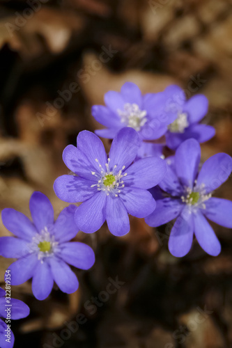 Leberblümchen Hepatica nobilis Frühblüher Frühling Winter Garten Hahnenfußgewächs Krautik überwinternd lila violett Makro Nahaufnahme Botanik Natur Pflanze