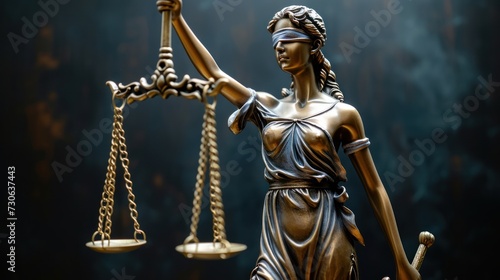 Legal Concept: Themis is the goddess of justice as a symbol of law and order on the background of dark room,copy space.