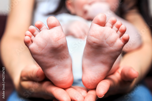 legs six-month baby in mother's arms
