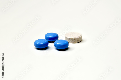 Leki biała tabletka niebieskie pigułki na białym tle