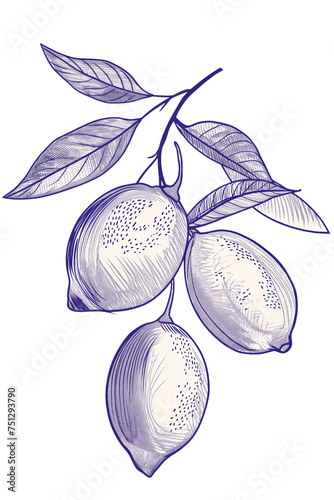 Lemon and leaf illustrations in hand-drawn style with fruit and citrus theme. PNG transparent background