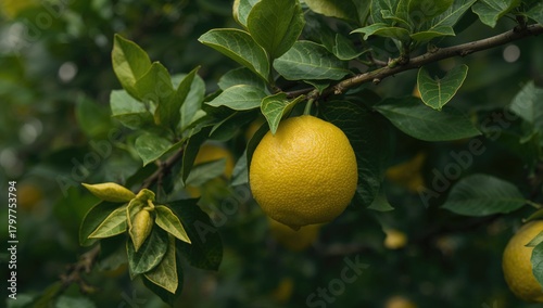 Lemon citrus fruit with vibrant yellow skin surrounded by green leaves in a garden, a beneficial addition to home gardens