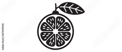 Lemon Fruit Slice Vector Art Illustration. Vector black silhouette. with white background