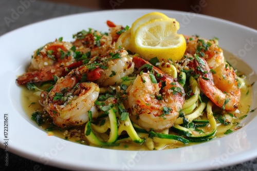 Lemon garlic shrimp with zucchini noodles and herbs