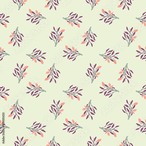 Lemonade seamless pattern with purple leaves and pink lemons abstract food print. Light grey background.