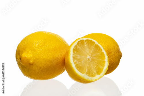 Lemons and half-lemon on a white background. Isolate on white. Photo