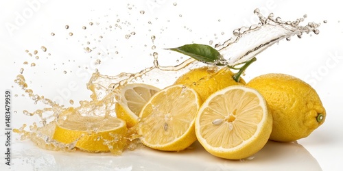Lemons in Water Splash Composition of Cut and Whole Lemons, High-Resolution Image, Refreshing Concept, Citrus, Photography Citrus, Photography