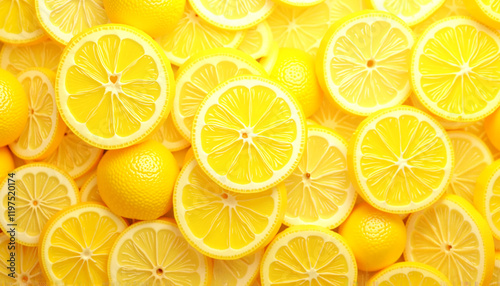 Lemons on yellow background, vibrant pattern, fresh and citrus-themed design