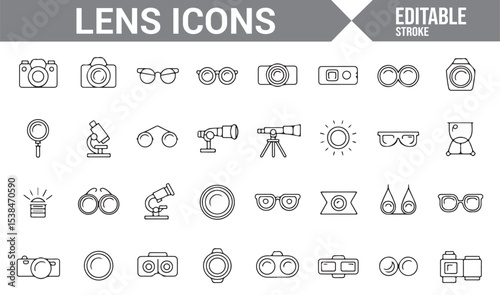 Lens-related icons ideal for websites, apps, and illustrations focused on photography and optics.