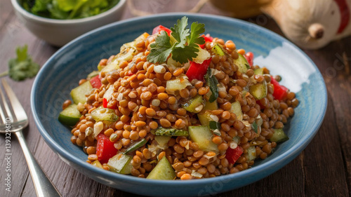 Lentil Salad: Fresh lentil salad with a mix of vegetables and a light vinaigrette