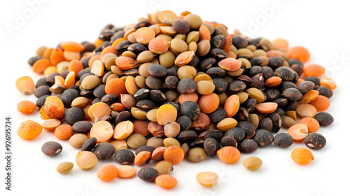 Lentils in a wooden spoons isolated on a white background.ai generative