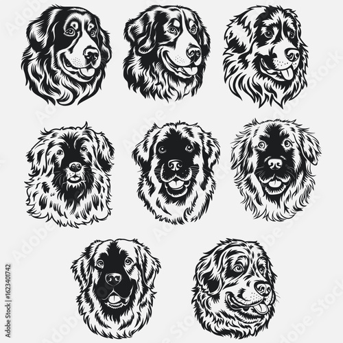 Leonberger art, dog svg files for Cricut, pet face head Clipart Download, png, breed vector graphics