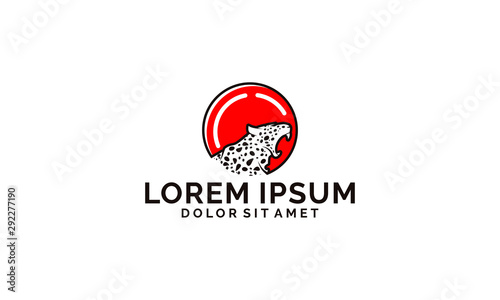 Leopard logo template with rounder lens and red circle symbol in flat design pictogram illustration
