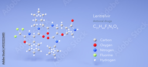 leritrelvir molecule, molecular structure, antiviral drugs 3d model, Structural Chemical Formula and Atoms with Color Coding